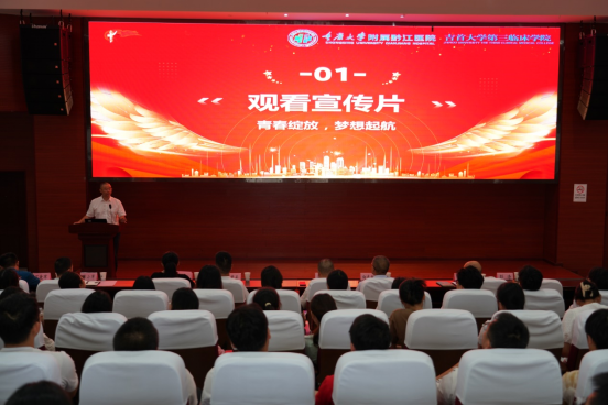 开学典礼上还观看了重庆市黔江区的宣传片和重庆市黔江中心医院的宣传片,让同学们对黔江区和医院有了更深入的了解。开学典礼结束后,向志钢为全体同学主讲了题为“深入学习贯彻习近平新时代中国特色社会主义思想,做时代好青年”的第一堂党课,嘱托同学们珍惜大学时光,坚守医者信念,牢记“健康所系,性命相托”的医学生誓言,增强服务中华民族伟大复兴的责任感与使命感,立志做新时代好青年。