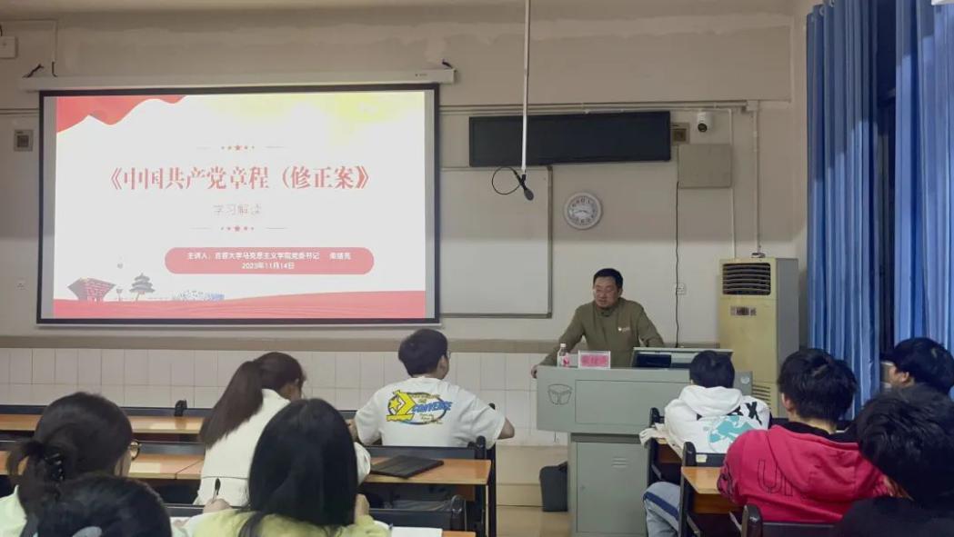 同时,为深入学习党的创新理论,在第一教学楼1207室,yl6809永利集团马克思主义学院党委书记柴绪亮为此次参训的发展对象解读《中国共产党章程(修正案)》。他强调,《中国共产党章程(修正案)》是党的根本大法,具有最高党法效力,他要求参训学员懂得并践行正确的世界观与方法论,坚持人民至上,坚持守正创新,坚持自信自立,坚持问题导向,坚持系统观念,坚持胸怀天下。他指出,党员要全心全意为人民服务,不惜牺牲个人的一切,为实现共产主义而奋斗终身,并希望参训学员能领悟党章,塑造党性,校准思想与行动,向合格党员稳步迈进。