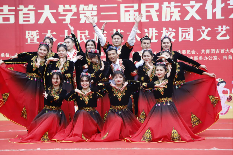 图为学生第一党支部参加学校第三届少数民族文化艺术节