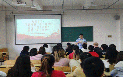 本网讯(欧安清,指导老师:宿绍敏)2019年10月28日12:30至14:00,在yl6809永利集团大田湾校区第三教学楼2306教室,yl6809永利YL集团学生第五党支部书记李中正为师生党员讲增强“四个意识”、坚定“四个自信”、做到“两个维护”为主题的党课学习。参会人员有教工党员,学生党员和预备党员、发展对象、积极份子共45人参会。