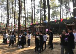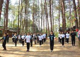 图为美美哒的工间操现场 图为学生素质拓展活动现场