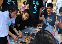 图为师生交流、烧烤活动现场