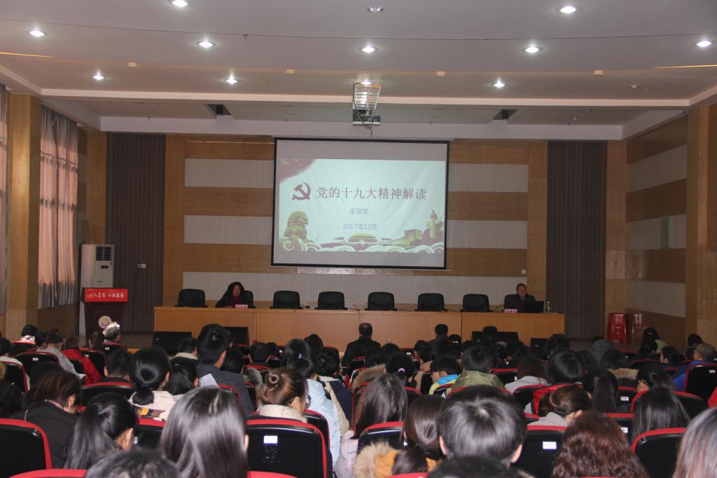 李景军以《党的十九大精神解读》为题,紧扣党的十九大报告原文,围绕习近平新时代中国特色社会主义思想,从四个方面对党的十九大精神进行精辟解读。他首先回顾了大会的内容及五项议程,然后解读了大会主题,重点对党的十九大报告的主要亮点进行了系统的阐释,最后结合我们的实际情况就党的十九大报告的关于教育的新论述,包括教育工作的战略地位、总体要求、根本任务、重点工作等进行了解读。