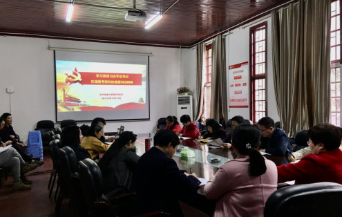 在交流学习心得体会环节,张旺从习近平总书记考察湖南时重要讲话精神中体会到了总书记对人民群众生活的深切关怀,对牢记革命历史、传承红色基因的引领示范及坚定信念。并表示,作为高校教育工作者,我们一定要把习近平总书记的讲话精神贯彻落实到教育工作指导方针中去,全面落实立德树人根本任务,传承发扬红色基因,全方面提升学生们思政素养,引领学生树立正确的祖国观、民族观、人生观和价值观,争做一名合格的社会主义事业建设者和接班人。