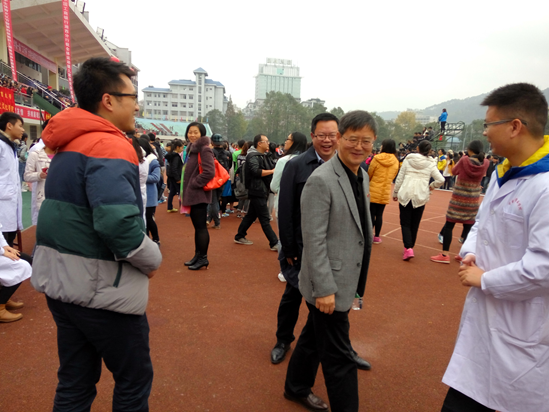 运动会开幕式结束后,黎奇升、龙先琼副校长,学工部周华忠部长、我院陈正英书记、谭敦勇院长等领导亲临活动现场看望志愿者,勉励同志们用推拿保健服务群众的成果来检验yl6809永利YL集团“三严三实”专题教育的成效。
