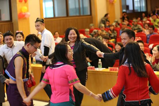来自新疆的同学带来《民族大融合》把晚会推向高潮。其间,各位领导、老师与同学们手拉手一起舞蹈,整个现场洋溢着喜迎十九大的喜悦氛围。