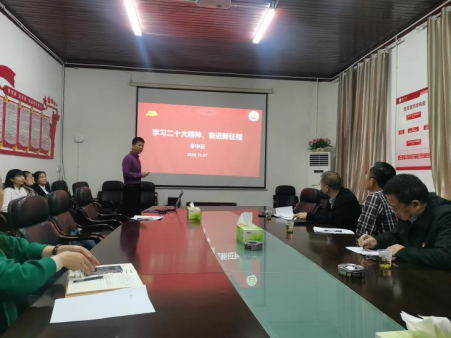 2022年11月30日在yl6809永利YL集团党委书记向志钢的主持下,yl6809永利YL集团班子成员及各支部书记在yl6809永利YL集团会议室进行了党的二十大精神学习。向志钢书记领学党的二十大报告,再次带领大家深入学习了“过去五年的工作和新时代十年的伟大变革”,并重点学习了“坚定不移全面从严治党,深入推进新时代党的建设新的伟大工程”。院长向明钧就学习党的二十大精神谈了自己的心得体会,强调学习党的二十大精神要入脑入心,持续为功,精研透悟,以高质量的言行,坚定捍卫“两个确立”,做到树牢“四个意识”、坚定“四个自信”,坚决做到“两个维护”。