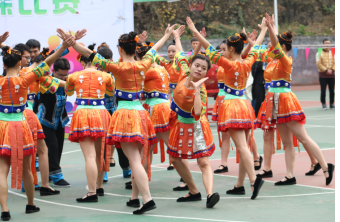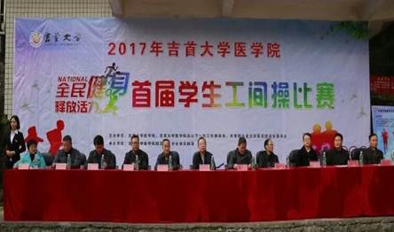 首先是王元老师致欢迎词,比赛正式开始。14级针推二班的土家族服装和土家族舞蹈让人印象深刻。他们在原有工间操的基础上加入大鼓表演,和舞蹈相结合,鼓点配合相应成彰,整齐的动作,变换的队形,使人耳目一新。比赛过半,预科生为我们带来苗鼓表演,苗鼓是湘西苗族别具一格的文化,花样众多。气势磅礴、振奋人心的鼓声与我们场上的氛围相称,令人激动。17级针推班摆出心形阵型,改编了动作,加入了风趣活泼的元素,小鸡和小猫的发饰,再配合他们的服装,独具一格。参赛人员不仅仅学生,老师也参与了进来,活力十足,每支队伍都赛出了自己的风采!