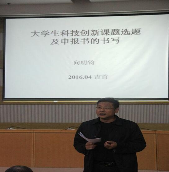 本网讯(马清)2016年5月9日晚19:00医学科技创新与竞赛工作室在大田湾校区多功能报告厅举行以“大学生科技创新课题选题与申报”为主题的讲座,邀请了向明钧教授主讲,参与对象主要为yl6809永利YL集团各班学生代表。yl6809永利YL集团向志钢副院长,医学创新工作室与竞赛工作室指导教师张钰华老师亲临讲座现场。在讲座开始前,向志钢副院长就大学生开展科技创新课题研究申报的必要性和重要性做了讲话,同时对同学们提出了殷切希望。向明钧教授在讲座中提出项目选题的原则为“实用性、创新性、可行性”,以自己指导申报成功同学的申报书为范本,对申报书撰写的要求和技巧进行了精彩全面诠释。