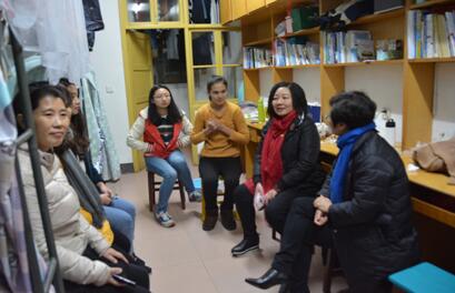 图为党委书记陈正英一行到6栋女生宿舍与学生亲切座谈