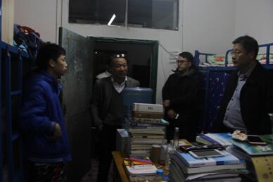 图为副院长秧茂盛一行到研究生宿舍看望学生