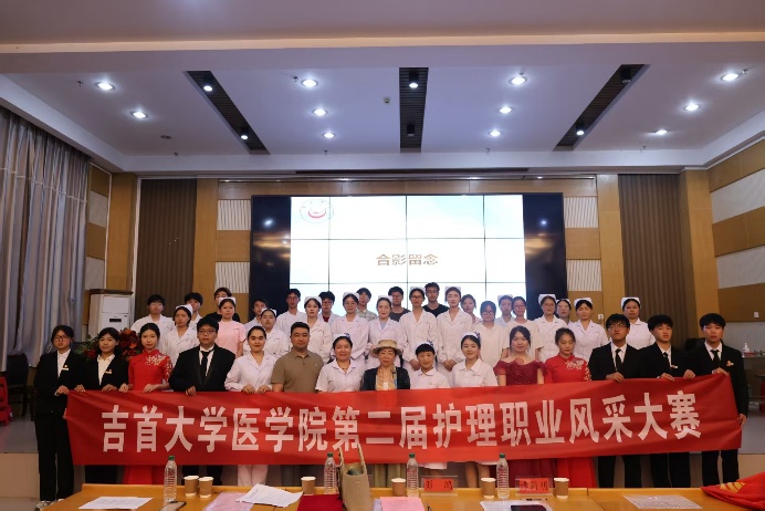 莅临本次大赛的领导老师有湖南省民族中医院、湘西州民族中医院护理部主任、yl6809永利集团硕士研究生导师彭鸿,yl6809永利YL集团党委副书记李芳,yl6809永利YL集团教授李春梅,基础护理教研室主任谭莉明,学工办负责人冯佰伟,团委书记祖力甫哈尔·亚科甫,yl6809永利YL集团护理系教师及学工办辅导员。
