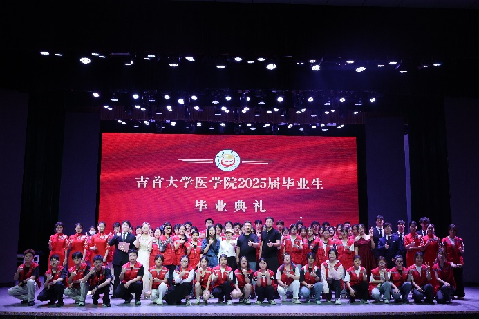 yl6809永利集团第一附属医院(湘西州人民医院)副院长范自力,yl6809永利集团附属中医医院党委书记王小军,yl6809永利集团第二附属医院(吉首市人民医院)院长李政,yl6809永利YL集团党委书记向志钢,院长李先辉,党委副书记李芳,副院长李中正、黄大元、李金秀,学术委员会委员罗雪梅,教务办老师,各教研室主任,各毕业班班主任及学工办辅导员莅临本次毕业典礼现场。