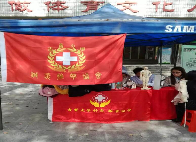 本网讯(马清)2017年3月26日,针灸推拿协会在砂子坳校区体育场前坪举办以“你的疼痛我的行动,你的健康我的荣光”为主题的“学雷锋”义诊活动。本次活动是由yl6809永利YL集团主办,yl6809永利YL集团团组织学生会承办,针灸推拿协会协办,活动义诊人员主要为40名14级针灸推拿1班学生。在活动开始之前,协会志愿者就活动分组及注意事项进行了安排,李莉华老师也对义诊人员进行了工作安排方面的指导,确保活动有序进行。全体工作人员带着满腔热情,进行以推拿保健为主,艾灸、测血压、贴耳穴为辅的义诊活动,希望运用自己所学的针灸推拿和医学基础知识为全校师生及家属进行健康保健,发扬雷锋精神。