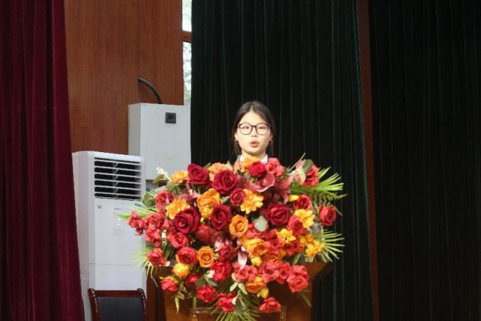 优秀学生干部代表周琴从“抉择、沉淀、发展”三个方面进行了经验分享。她结合自身任职经历,以实际行动告诉大家,所有的磨炼换来的是成长,虽然会累,但受益匪浅,最后,她建议同学们要敢于尝试,学会调整好自己的时间,平衡好工作与学习。