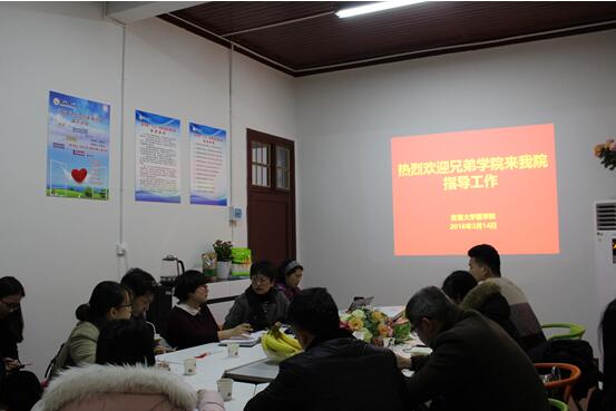 (丁晓岚 彭校辉)3月14日下午,我院“仁心”特色成长辅导室建设交流会顺利召开,化学化工学院党委副书记杨龙斌、音乐舞蹈学院党委副书记高昆带领两院全体辅导员莅临,院党委副书记王元带领全体辅导员参会。会议由王元主持。