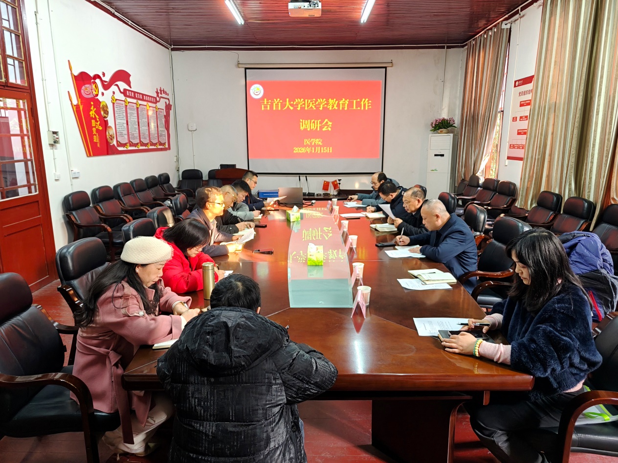 (本网讯)1月15日下午,yl6809永利集团党委委员、副校长、湘西自治州人民医院党委书记、院长黄纯海率湘西州人民医院副院长范自力、医务部负责人石长坚、科教科负责人陈艳、yl6809永利集团党政办副主任成琢玉、yl6809永利集团规划处副处长彭克锋、规划处医学教育办公室主任袁志忠等一行七人就学校医学教育工作来我院调研指导工作,学院党委书记向志钢、院长李先辉、副院长李中正、党委副书记李芳、副院长黄大元、李金秀等陪同调研。