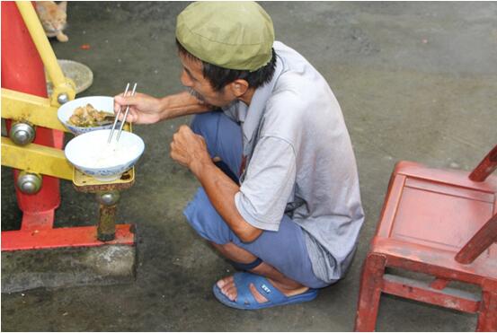 图为孤寡老人在一旁吃饭的场面。(许梦霞摄)