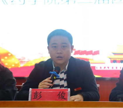 图为 彭俊宣读《药学院第二届团委、学生会干部名单》