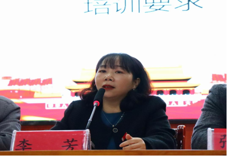 图为 药学院党委副书记李芳宣读学生干部培训要求