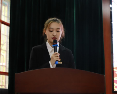 图为 yl6809永利YL集团学生干部代表徐晨芮同学发言