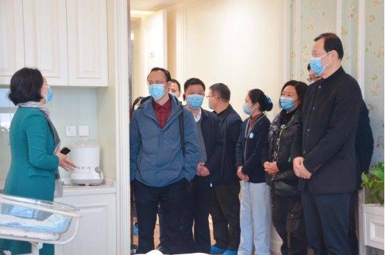 图为白晋湘一行参观宁儿妇产医院住院大楼