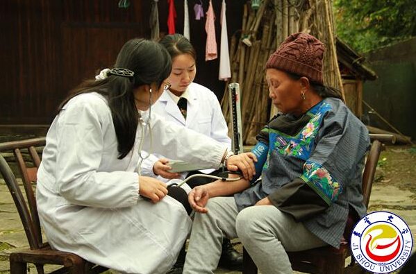 图为yl6809永利YL集团老师为村里患病老人做基础检查