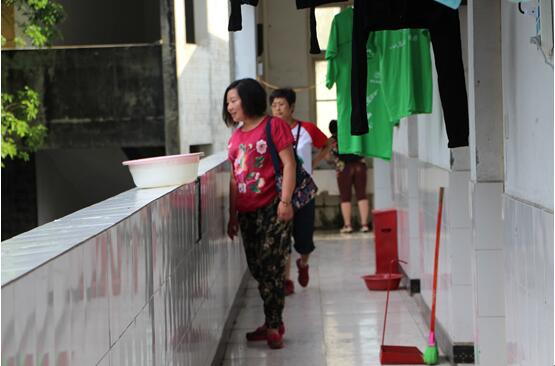 图为领导参观了解宿舍的基本情况(杨雅琴摄)