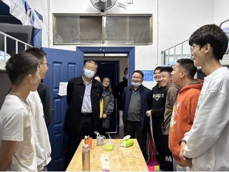 我院领导老师与同学们亲切交流、耐心沟通,仔细询问了近期返校同学们的情况,并详细了解同学们的日常生活和学习,关心学生们的思想动态、精神风貌。在生活方面,希望学生们要注意个人作息时间,养成良好的生活习惯;在学习方面,询问学生们的学习进度,激励学生努力学习专业知识、按时完成学习任务;在疫情防控方面,督促学生注意个人卫生做好个人防护,最后院领导们贴心提醒近两天温度骤降、天气转冷,同学们要注意保暖预防感冒发烧。