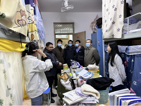 (通讯员 李可怡 曾文湘)为深入落实我校“四级包联”教育管理工作制度,统筹做好学生日常教育管理服务与疫情防控工作,维护校园和谐稳定,为学生营造良好的学习生活氛围。本周我院党委书记向志钢,院长向明钧,副院长李中正,党委副书记张旺,学工办全体老师及2022级新生班主任走访学生宿舍。