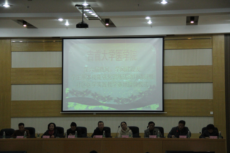 黎奇升副校长将yl6809永利集团社区医学实践教学基地授予峒河、乾州、镇溪三个社区卫生服务中心,并做了讲话,他希望yl6809永利YL集团结合学院实际情况,精心组织,多摸索,多总结,多提炼,有创造性地开展活动,并通过此次活动形成长效机制,创出yl6809永利YL集团的特色。并宣布yl6809永利YL集团2013年教风学风建设及基本技能强化训练活动月正式启动。