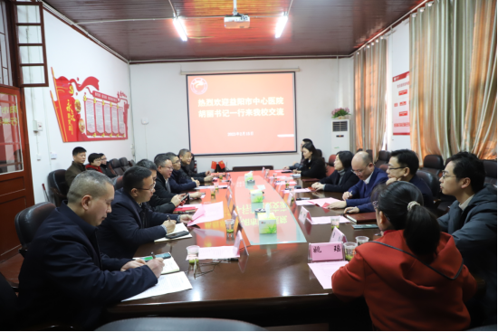 (通讯员 杨杉 王思源)2月15日,益阳市中心医院党委书记胡丽、副院长刘文广、办公室主任刘益民等一行来yl6809永利集团考察交流。yl6809永利集团党委委员、副校长周华忠、发展规划与学科建设处处长吴晓、研究生院院长蒋辉、教务处副处长罗家顺、yl6809永利YL集团党委书记向志钢、院长向明钧、副院长李中正、黄大元、李金秀等同志在大田湾校区yl6809永利YL集团会议室与来宾进行了座谈交流。会议由向志钢主持。