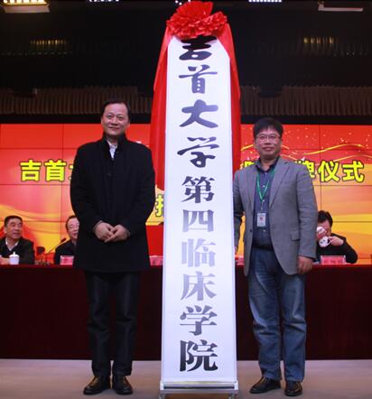 图为白晋湘校长为我校第四临床学院授牌(李继红摄)