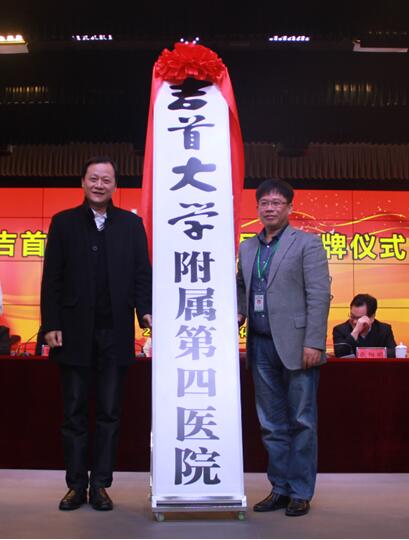 图为白晋湘校长为我校附属第四医院授牌(李继红摄)