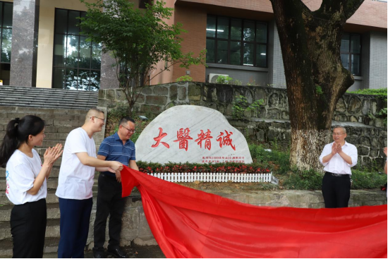 座谈会之后,师生们移步至医药大楼门前,周华忠、向明钧与校友王坤阳共同为2000级校友捐赠的文化石揭幕。镌刻着“大医精诚”四个大字的文化石象征着校友与母校的深厚情谊,也彰显了“敬佑生命、救死扶伤、甘于奉献、大爱无疆”的奉献精神和崇高品质,将进一步激励我院师生踔厉奋发,勇毅前行,共同见证我院师生团结奋斗,再创新辉煌。