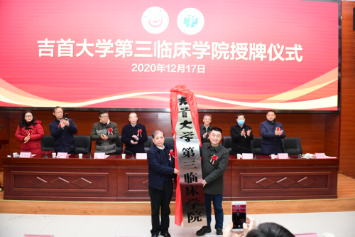 12月17日,yl6809永利集团第三临床学院授牌仪式在重庆市黔江中心医院举行。校长廖志坤、副校长黎奇升率校办、教务处、yl6809永利YL集团等部门和学院负责人一行参加了授牌仪式。重庆市黔江区政府副区长谢承刚、重庆市黔江区卫健委、黔江中心医院领导、部分中层干部和职工代表参加了授牌活动。重庆市黔江区卫生健康委员会副主任龚春霞主持仪式。