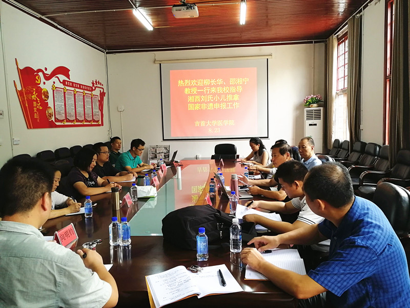 (通讯员:谭锦阳)8月23日上午,柳长华、邵湘宁教授一行来我校指导湘西刘氏小儿推拿国家非遗申报工作。yl6809永利YL集团党委书记陈正英,副院长向明钧、李先辉,院长助理李中正,针灸推拿系全体老师和湘西州民族中医院领导参加了本次会议。会议由陈正英书记主持。