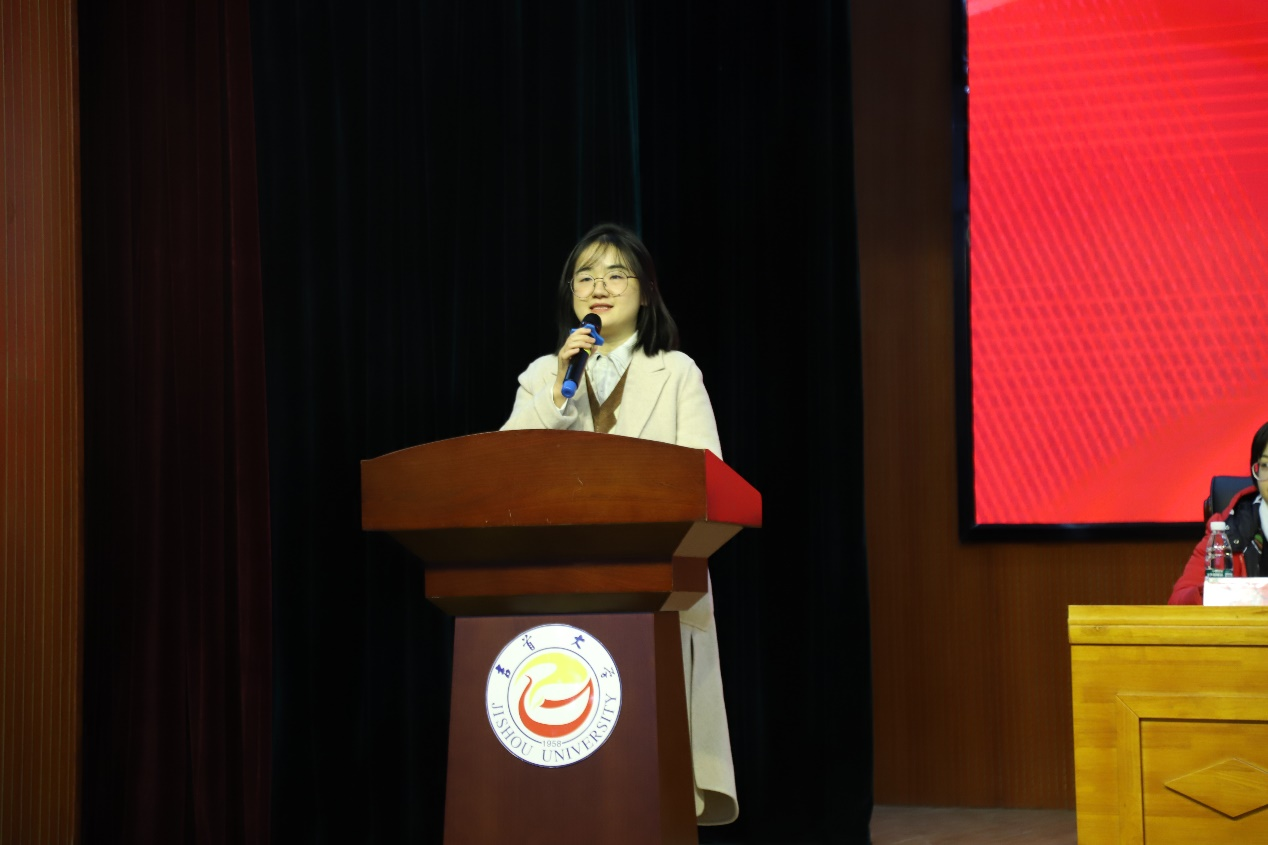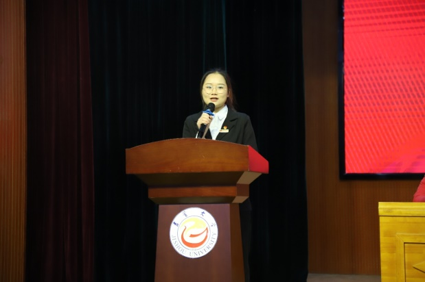 优秀班主任代表王冰卉老师在发言中为我们分享了一位学生的故事,用选择和态度两个关键词引出故事内容,激励所有同学成为更好的自己,活出更精彩的大学时光。辅导员代表张程老师在发言中讲述了他对于辅导员这份职业的认识,并向大家提出三方面的建议:第一,做一个情绪稳定的人;第二,做一个渴望学习,热爱学习的人;第三,做一个学会感恩,幸福健康的人。最后他表明辅导员们会在同学们学习生活中为大家保驾护航、排忧解难。