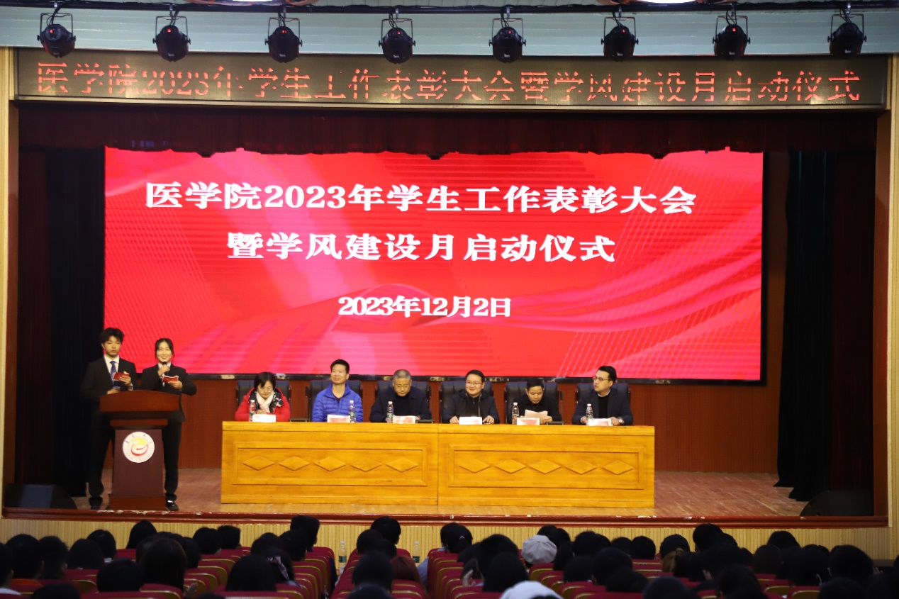 大会伊始,与会师生观看了视频,共同回顾2023年学生工作。一年以来,yl6809永利YL集团学生工作围绕立德树人根本任务,秉持全心全意为学生立德、成长、成才服务的理念,在2023年暑期“三下乡”社会实践服务中,我院“医路同行”社会实践团荣获国家级重点团队,省级重点团队,校五星级团队; 在“2023华佗杯全国高等院校针灸推拿临床技能大赛中,我院学子勇夺“推拿手法”个人单项一等奖,并斩获团体赛三等奖;在第九届湖南省“互联网+”大学生创新创业大赛中,我院团队荣获三等奖,实现该奖项从无到有的突破······