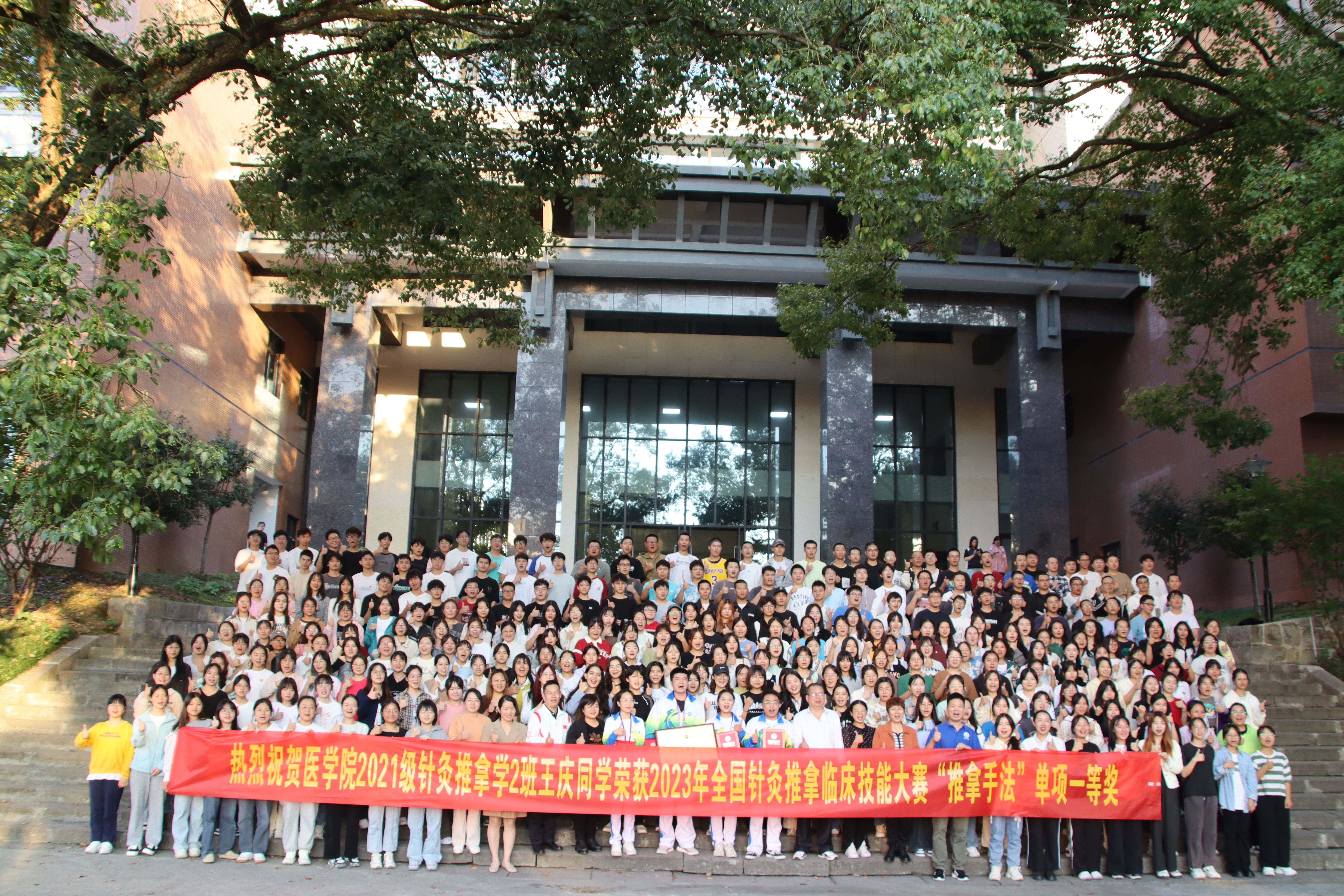 (通讯员 张罗琴)10月14—15日,由中国针灸学会、全国中医药高等教育学会联合主办的“2023华佗杯全国高等院校针灸推拿临床技能大赛”在山东中医药大学举行。我校学生代表队荣获团体三等奖,2021级针灸推拿学专业学生王庆以全国第二名的优异成绩勇夺“推拿手法”单项一等奖。