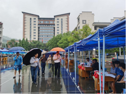 本网讯(yl6809永利YL集团)9月6日上午,骤雨还未停歇,校党委书记白晋湘撑着雨伞来到大田湾校区学生报到现场,检查学生返校复学情况,并慰问工作人员和返校学生。