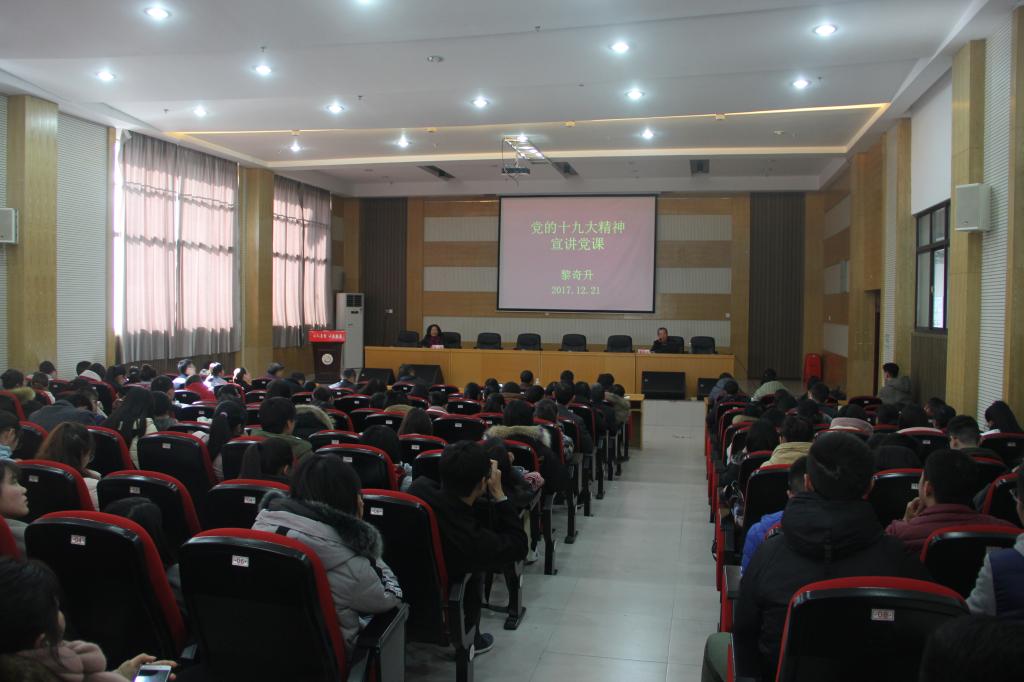 本网讯(李继红)12月21日,为学习宣传贯彻党的十九大精神热潮,校党委委员、副校长黎奇升到大田湾学术报告厅,为yl6809永利YL集团200余名师生党员讲专题党课,宣讲党的十九大精神。