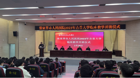 2月28日,我校2020级临床医学专业临床教学开班仪式在张家界市人民医院行政楼三楼会议室举行。张家界市人民医院党委书记陈明、副院长雷明盛及科教部老师,yl6809永利YL集团党委书记向志钢、发展规划与学科建设处副处长田启建、教务处副处长罗家顺、yl6809永利YL集团党委副书记张旺、副院长李中正,教务处实践科、yl6809永利YL集团相关老师和2020级临床医学1班、2班、9班全体同学参加了仪式。仪式由张家界市人民医院副院长雷明盛主持。
