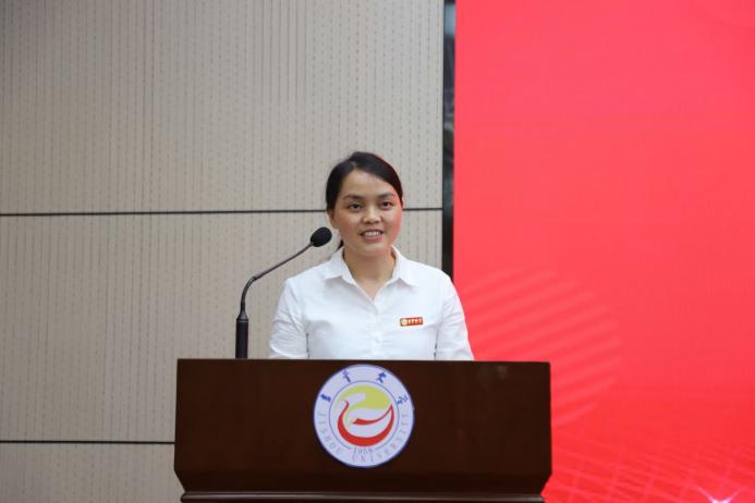 导师代表杨梅松竹以网络热梗"劝人学医,天打雷劈"幽默破冰,随即严肃分享从医心得:"临床与科研如同鸟之双翼,唯有热爱可抵岁月漫长",并针对轮转规划、职业发展提出实操建议;2025级临床医学专业学位硕士新生代表陈宝晴以“研途求真知”、“医者怀大情”、“立足吉首、胸怀家国” 三方面出发,誓言将"以患者为中心"的理念贯穿学业始终。