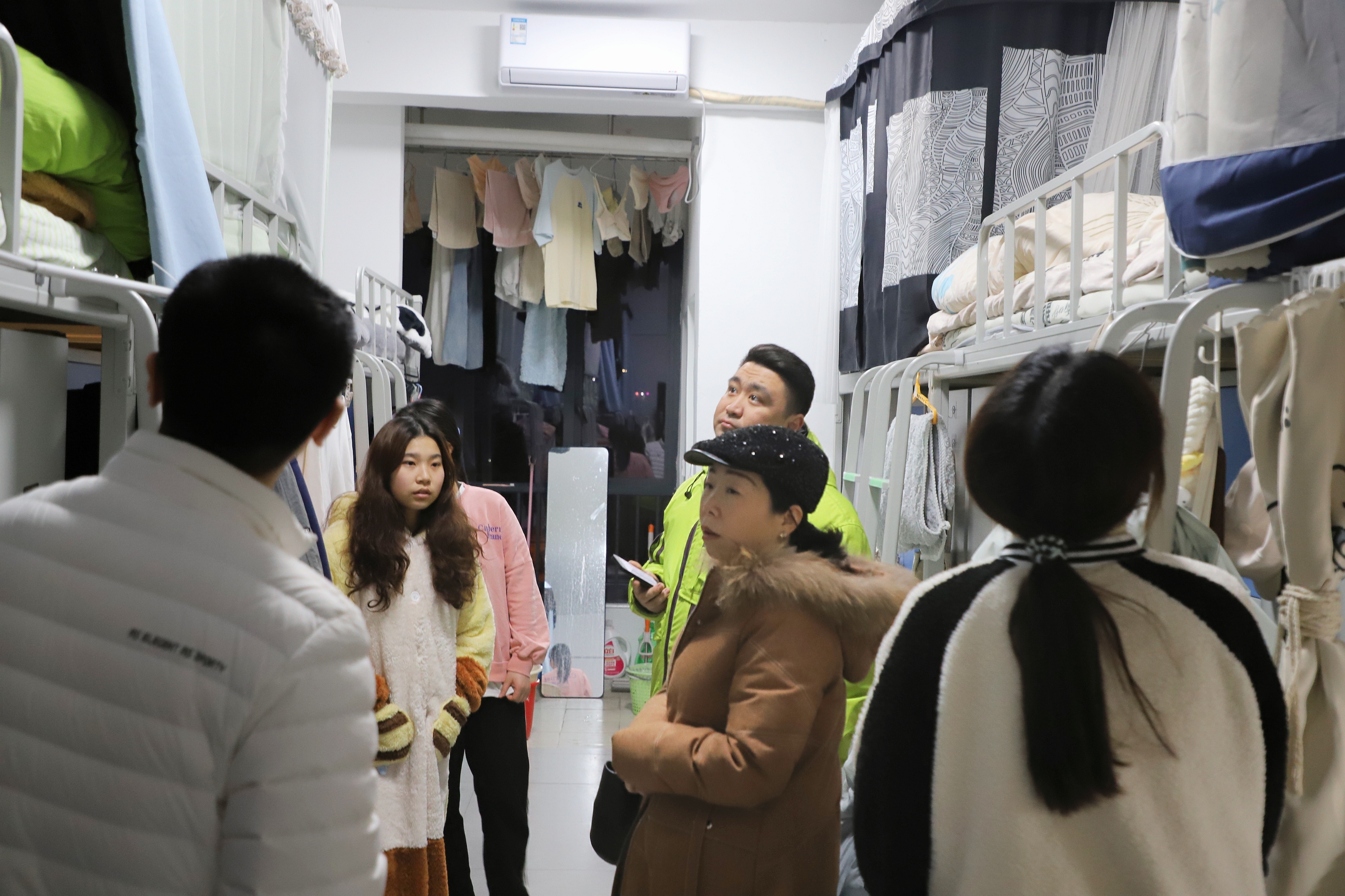 (图为 领导老师走访学生宿舍)