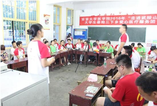 本网讯(通讯员:刘铃) 7月14日晚7:00,“大医精诚”和“医路同行”社会实践团队于河溪镇河溪小学开展了“践行社会主义核心价值观,争做向上向善好青年。”的主题团课。此次团课的主持人为临时团支部书记孙思卉。参与此次团课的嘉宾有:yl6809永利YL集团党委书记陈正英、yl6809永利YL集团副院长向志钢、yl6809永利YL集团党委副书记王元以及参与此次“三下乡”活动的带队老师。